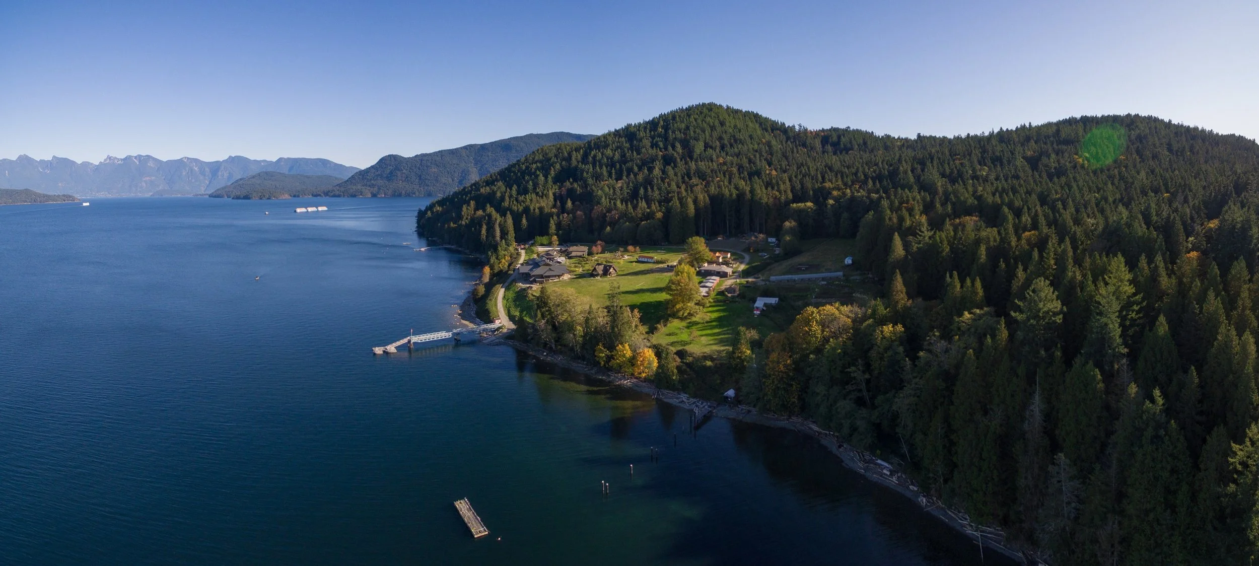 We look out across the natural beauty of the Howe Sound to Gambier Island and the majestic Sea to Sky Mountains beyond